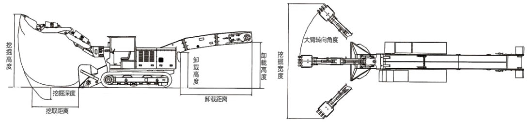 扒渣機配備銑挖頭后,可在硬度4F的煤巷或半煤巷掘進時工作,無需炮掘。本機帶有快速連接器,巖巷掘進時挖斗和銑挖頭互換,爆破后用挖斗裝渣,實現了一機兩用;主要液壓件采用德國進口正齒輪變速箱,由高扭矩的液壓馬達驅動,使銑挖頭在更惡劣的高負荷作業條件下應付自如。配有內噴霧及高壓外噴霧裝置,滅塵效果好;使整機足夠的重量,截割巖石時機身穩定。