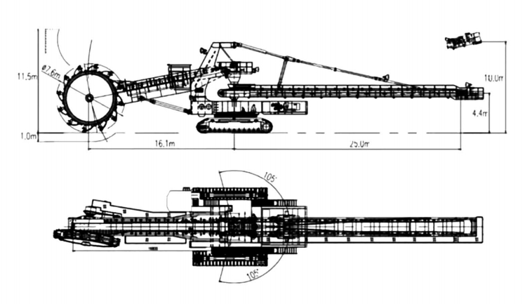 輪斗挖掘機特別適合在露天礦大型士方主程(例如公路,運河或水壩),儲料場應用。在露天礦對開采規模的要求有很大區別因此可采用各種不同的采掘設備,不同機型組成的聯合機組見下列: